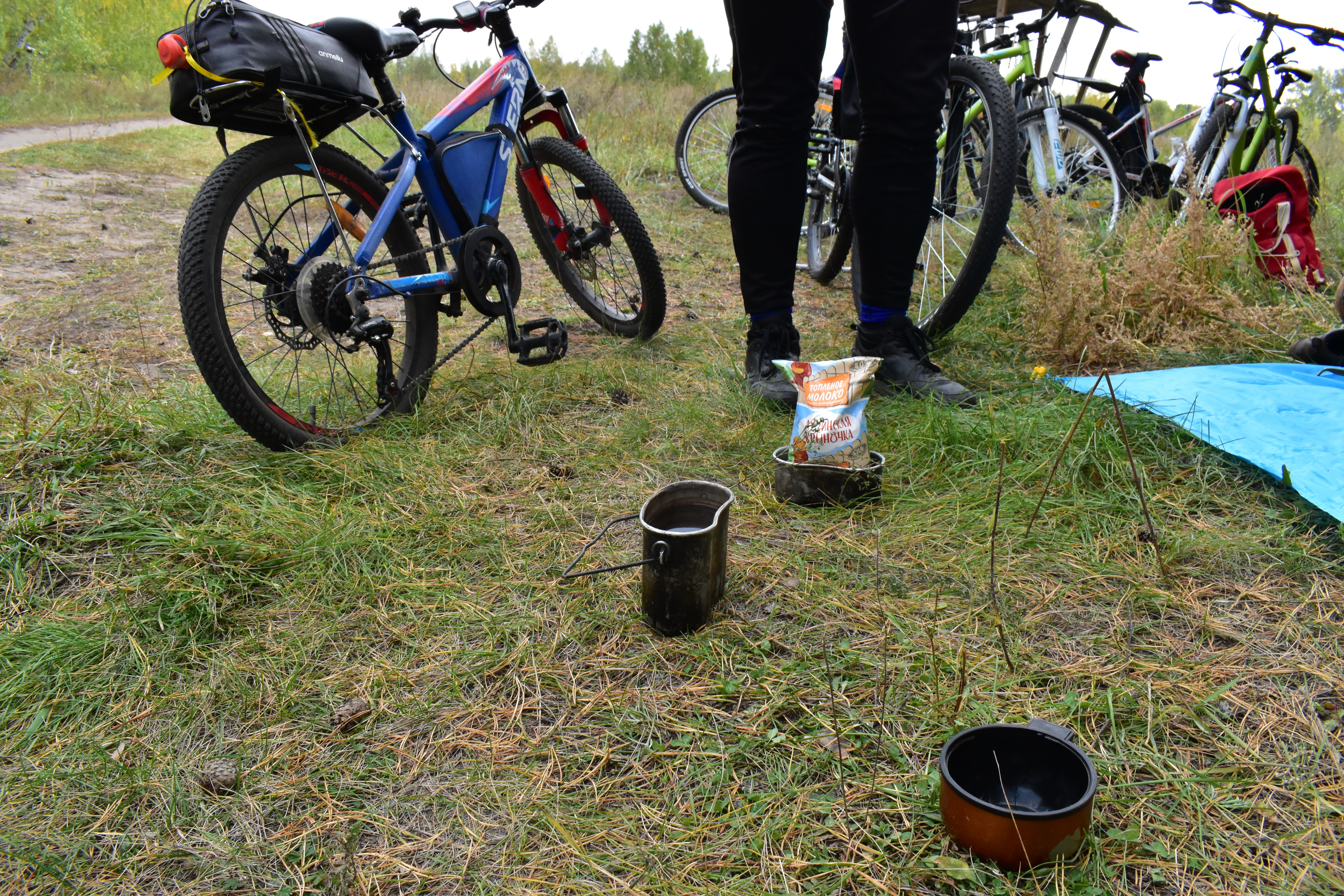 Потрясающий сюрприз устроил один из участников выезда Владимир Аулов — он привёз с собой газовую горелку и на одном из привалов, когда мы преодолели уже 12 км пути, сварил настоящий кофе, которым угостил всех желающих. Запах кофе, свежий ветер и солнечный лес — это ли не мечта?