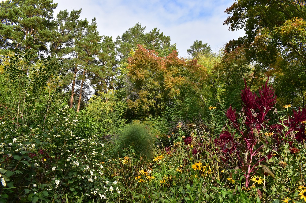 Мы вдыхаем сладкий аромат всё ещё цветущего алиссума, собираем разноцветные букеты из осенних кленовых листьев, ищем жёлуди монголького дуба и пробуем прямо с ветки на вкус крупные ягоды боярышника Арнольда и плоды сибирской яблони.