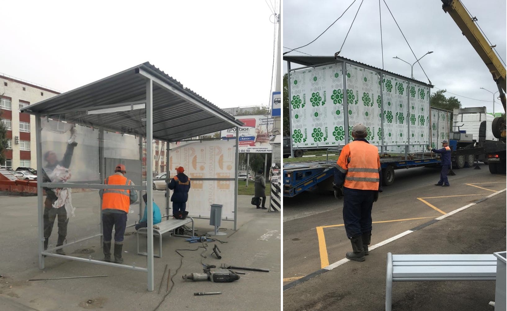 Учреждения ФСИН занимаются изготовлением остановочных павильонов по двум контрактам с мэрией на сумму 13,3 млн рублей, выделенных в качестве субсидии из облбюджета. За установку отвечают дорожно-эксплуатационные участки окружных администраций. По словам замдиректора Управления дорожного хозяйства и благоустройства Андрея Парыгина, к работам дорожники приступили на прошлой неделе.По данным мэрии, новые павильоны появились на остановках «Аэропорт местных линий», «Кадетский корпус» (здесь они были установлены ещё к открытию ученбного заведения), «Котельникова», «Универсам», «Ж/д больница», «Посёлок Дальний», «ПТП № 1», «СКК им. Блинова», «РЕЛЕРО», «Школа № 65», «Куйбышева», «Центральный рынок», «КДЦ Маяковский», «ДК Звёздный», «Кинотеатр Первомайский», «Ул. Белозёрова», «Ул. Стрельникова».