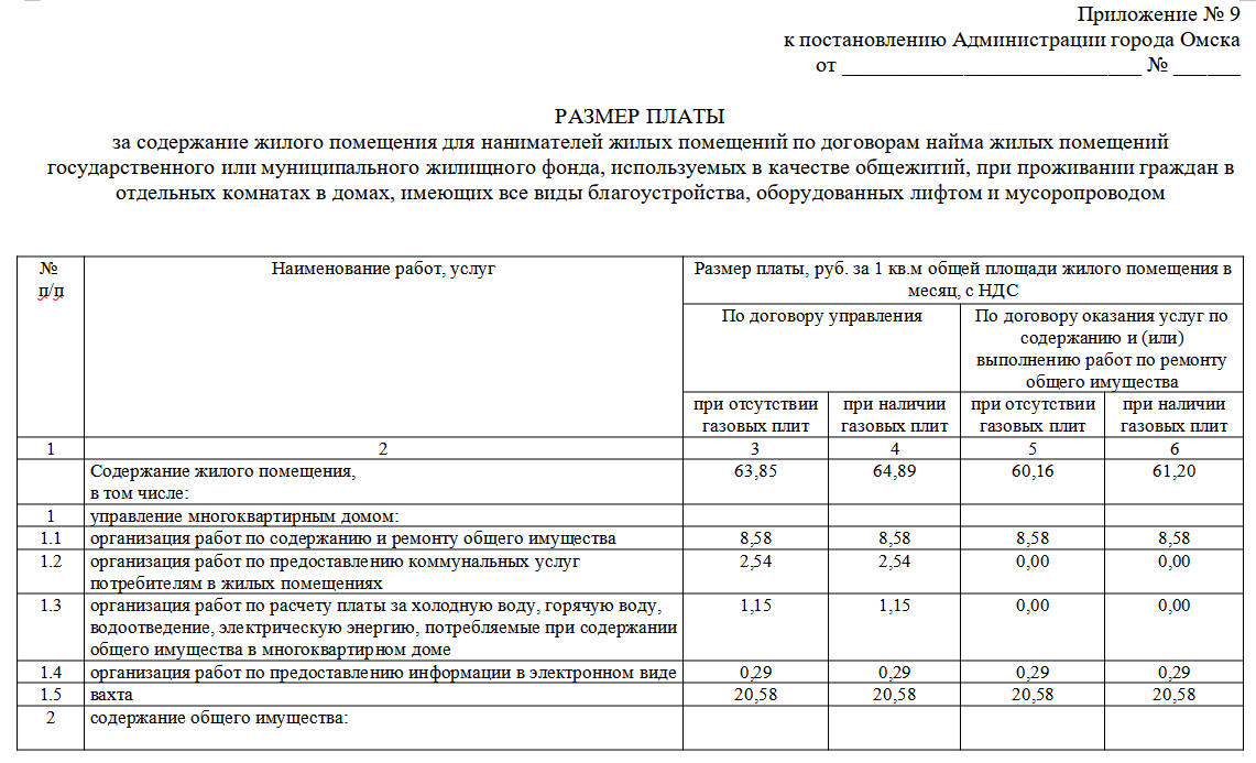 Для домов, которые используются в качестве общежитий, также есть градация в зависимости от оборудованности различными системами. Размер платы предусмотрен от 48,28 до 64,89 рубля за 1 кв.м. Подробнее — в документе.