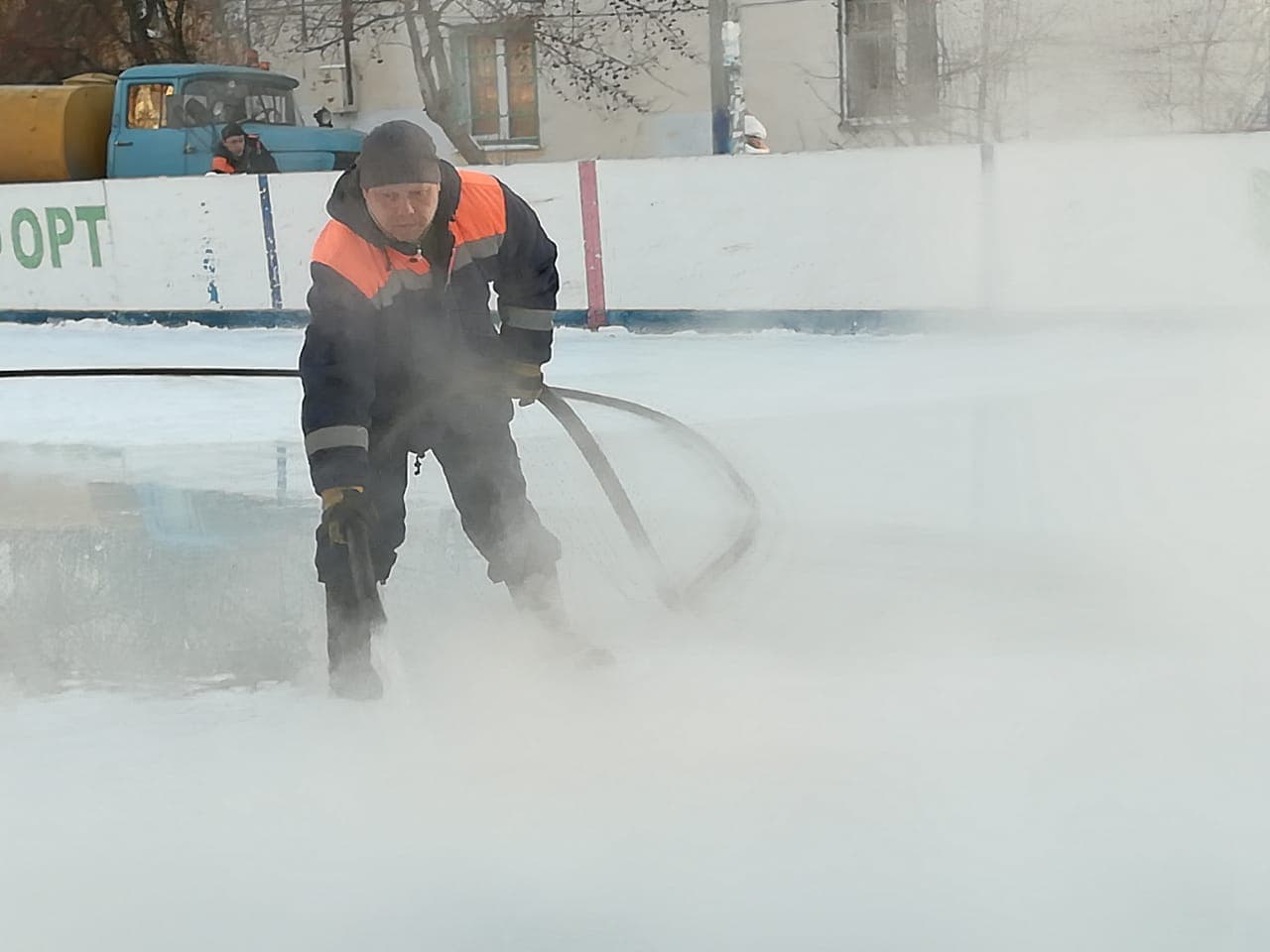 Последний из них заливают горячей водой. Только так ледяное полотно станет гладким и зеркальным. Имеет значение и погода. Оптимальная температура во время заливки — от -15 до -20°. Выбор дворовой площадки для катка зависит от пожеланий омичей.
