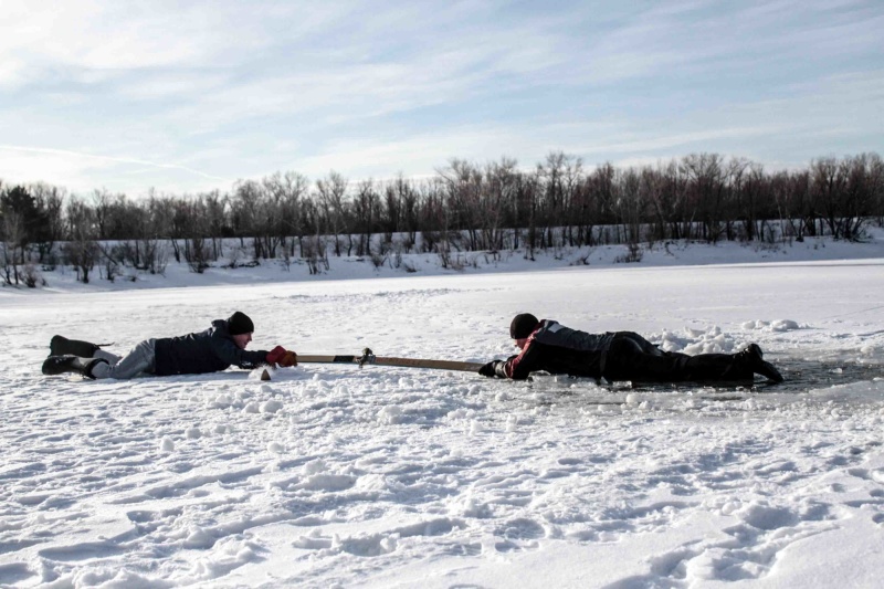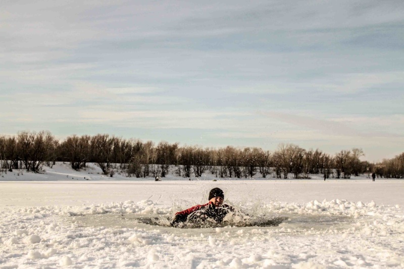 «Не делайте резких движений, стабилизируете дыхание. Широко раскиньте руки в стороны и постарайтесь зацепиться за кромку льда, чтобы не погрузиться с головой. По возможности переберитесь к тому краю полыньи, где течение не унесёт вас под лёд. Затем осторожно, не обламывая кромку, наползая грудью, лягте на край льда, забросив на него одну, а затем и другую ногу. Если лёд выдержал, медленно откатитесь от кромки и ползите к берегу. Отмечу, что передвигаться нужно в ту сторону, откуда вы пришли, ведь там лёд уже проверен на прочность», — рассказал правила самоспасания Сергей Лазаренко.