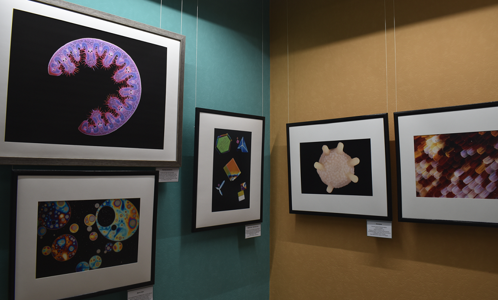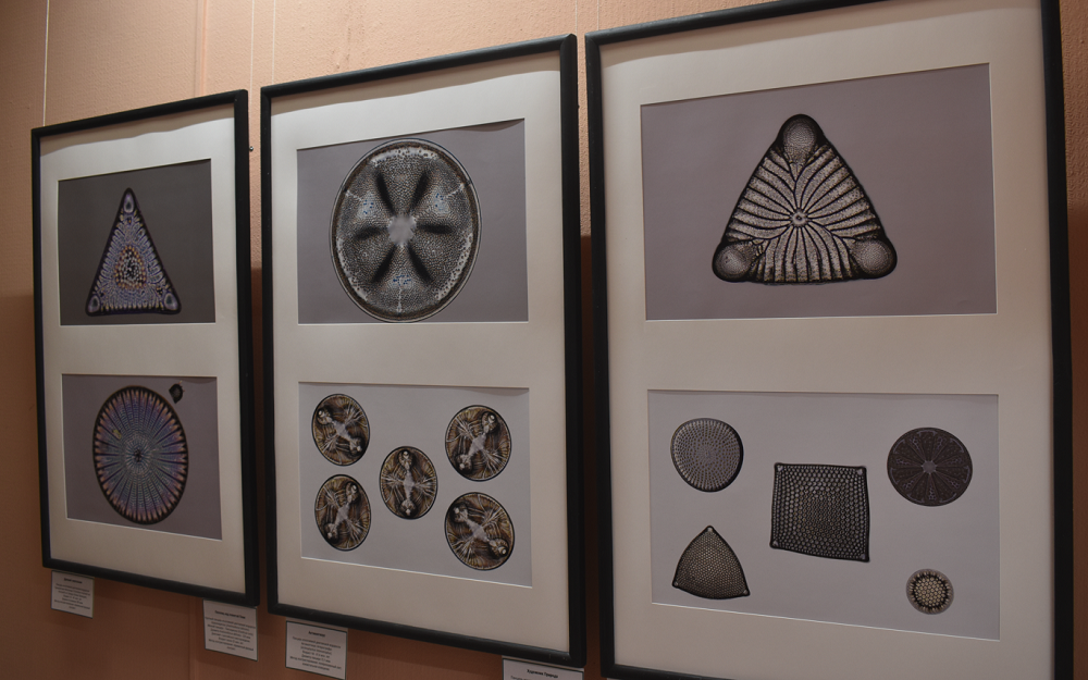 Гости выставки узнают, как выглядят под микроскопом микрокристаллы человеческой слезы и минеральной воды, клетки гинкго билоба, папоротника, сосновой иголки.