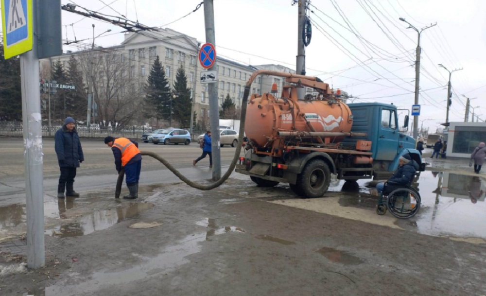 Более 1,1 тысячи кубометров воды откачали с омских улиц