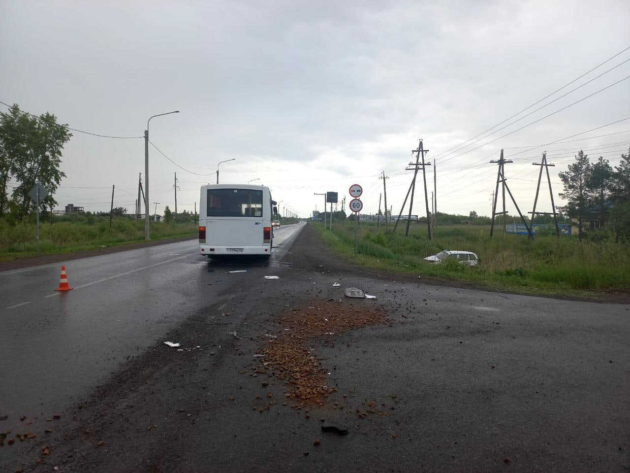 В Омской области произошло ДТП с участием пассажирского автобуса, легкового автомобиля и экскаватора