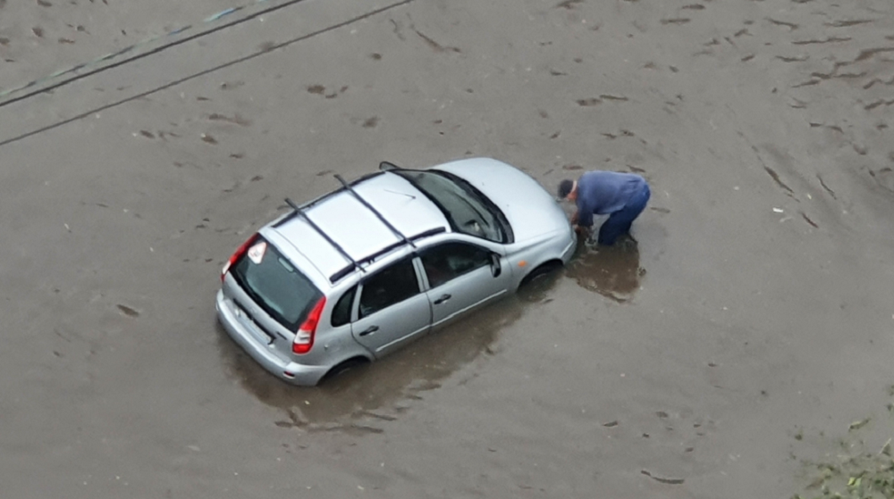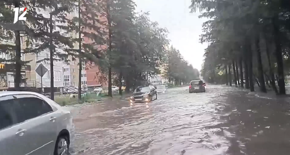 На улицах Манякина и Комарова из-за дождя образовался настоящий потоп.