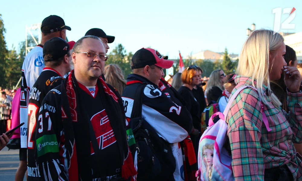 Когда на сцену начали выходить «ястребы», вся Соборная площадь буквально взорвалась восторженными криками. Интересно, что до сцены хоккеисты добирались на коньках — для них установили не красную, а ледовую дорожку.