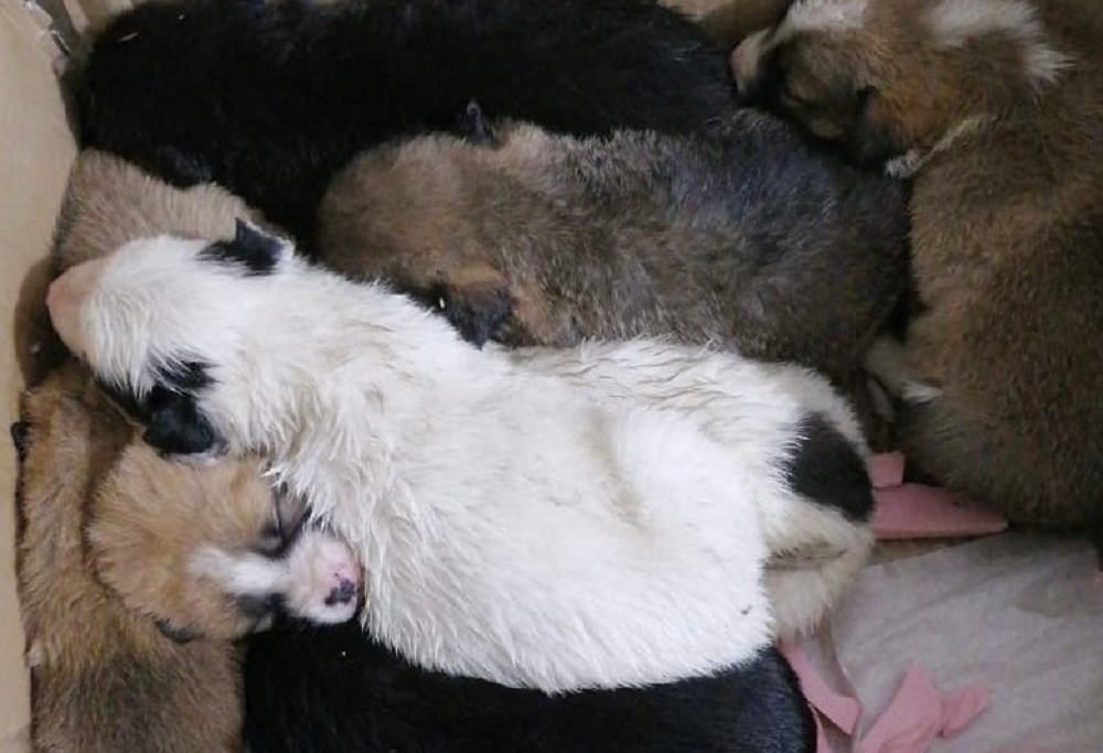 Как рассказали в областном УМВД, в минувшее воскресенье, 27 ноября, полицейский возвращался вечером домой и в гаражах увидел лежащих прямо на снегу маленьких щенков. Их было восемь. Судя по тому, что некоторые малыши уже успели примёрзнуть к земле, лежали они там довольно долго. Алексей позвонил своей жене Кристине, а пока ждал её, отогревал щенков по очереди у себя за пазухой.