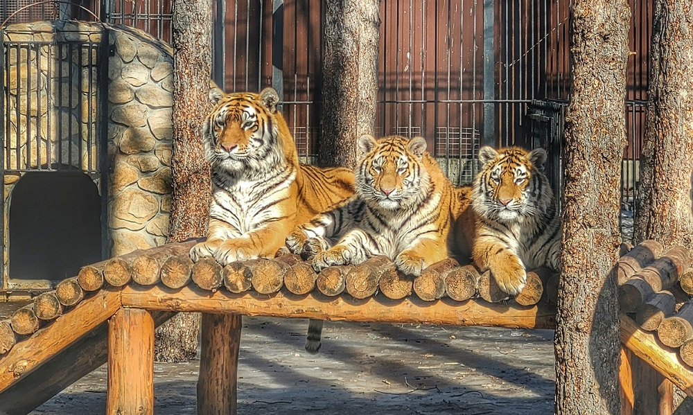 На фото можно увидеть леопарда, тигриную семью, красных волков, медведя и других.