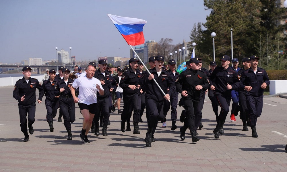 В забеге приняли участие военнослужащие Омского гарнизона, курсанты Академии МВД, представители региональных спортивных федераций единоборств, а также все желающие омичи.