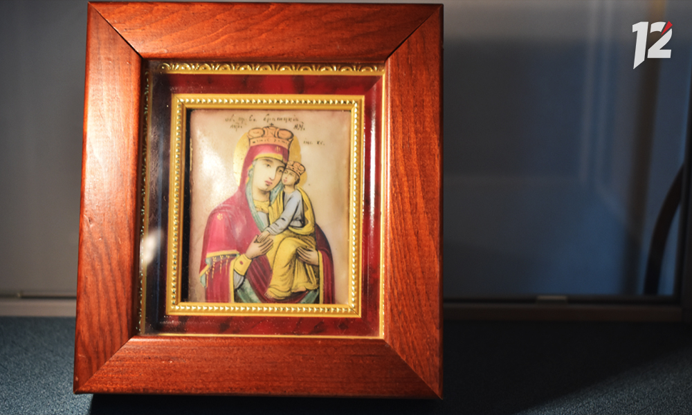 Посетители музея могут увидеть фрагмент стены могилы с металлическим крестом. Сейчас на кресте размещено фото Братской иконы. Сама икона, которую очистили от земли и извести реставраторы, хранится в стеклянной витрине, стоящей слева от каменной плиты. Икона прекрасно сохранилась, так как была написана на металле. Также в могиле нашли ещё одну икону, деревянную. Она сильно пострадала от долгого нахождения в воде, но на оборотной стороне удалось прочесть дарственную надпись, гласящую, что икона преподносится в дар архиепископу Сильвестру.