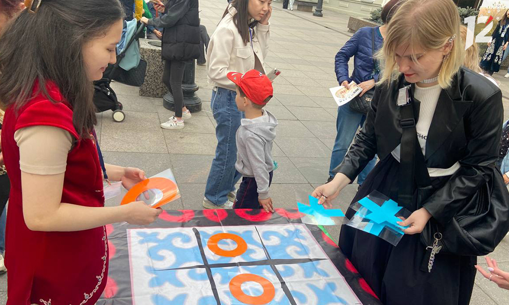 На улице Чокана Валиханова общественная организация «Казахи Омска» провела квест, в котором нужно было собрать ключи: гости мероприятия танцевали, разгадывали загадки и играли в «крестики — нолики».