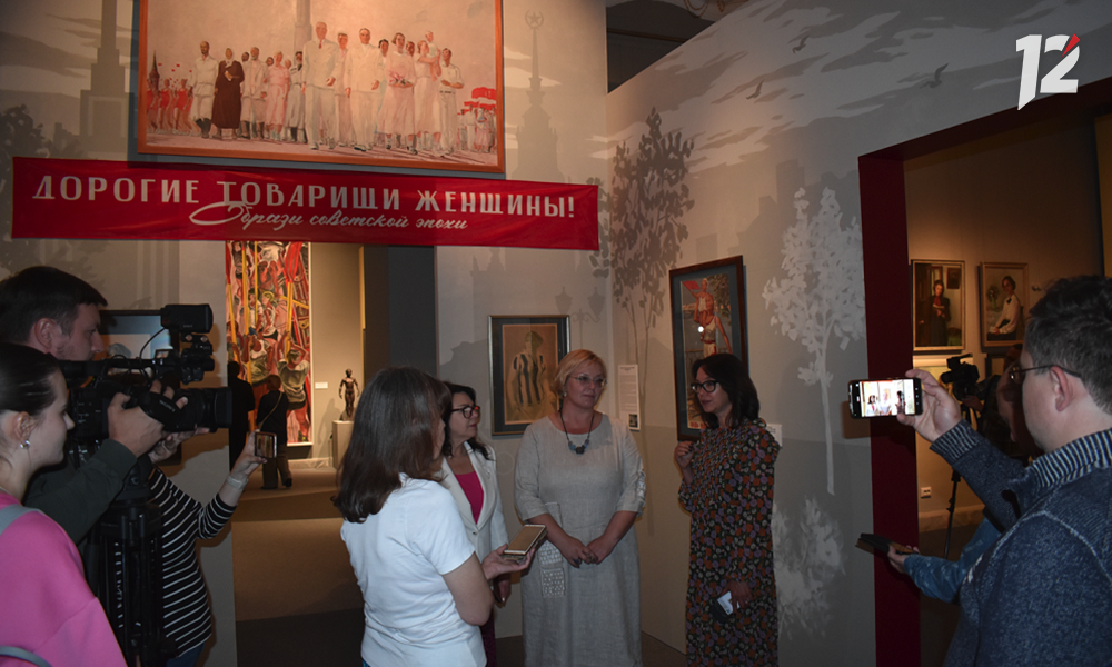 «Это продолжение той выставки, которую мы открывали пару лет назад. Называлась она «Барышня-крестьянка». Мы говорили о женском образе в русском искусстве. А сегодня это уже ХХ век, мы концентрируемся именно на советском периоде. И мне кажется, эта выставка даёт нам огромнейшее поле для разговора — об искусстве, кино, литературе, о стахановском движении, осоавихимовском, досаафовском, о войне. Обо всём!» — рассказала директор музея им. Врубеля Фарида Буреева.