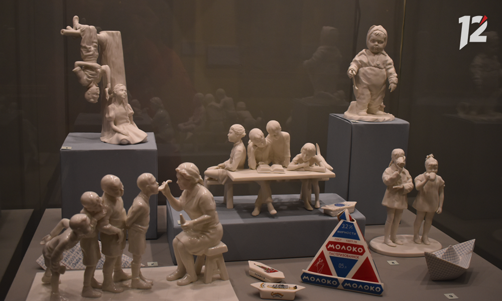 Фарфоровые статуэтки московской творческой мастерской Клименкова запечатлели сцены советского детства с кружкой молока, ложкой рыбьего жира, первой школьной влюблённостью.