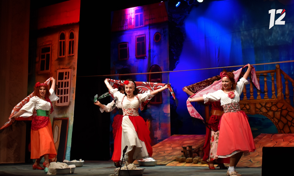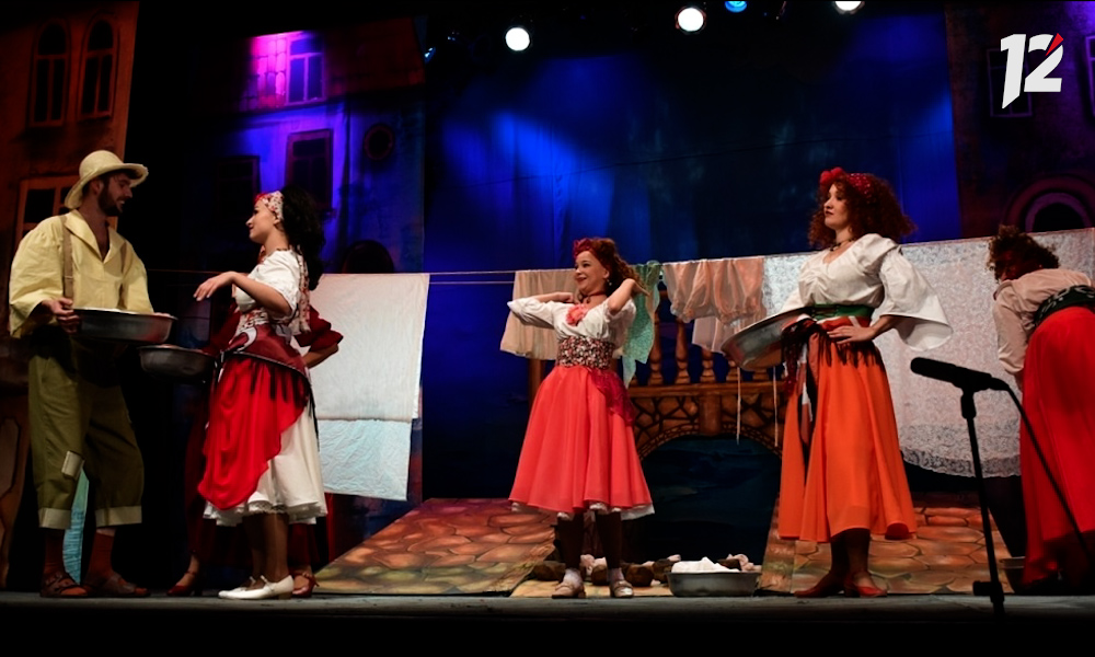 Это первая премьера 35-го, юбилейного, сезона театра. Спектакль по мотивам пьесы Карло Гольдони «Кьоджинские перепалки» поставила режиссёр Ольга Краскова. Она же выступила в роли художника и автора инсценировки.