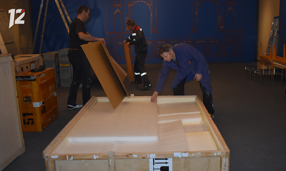 С каждого ящика аккуратно снимают крышку, убирают слои наполнителя и бережно, на руках, переносят картину на стол. Сотрудники принимающего музея тщательно обследуют каждое полотно фиксируя все недостатки, с которыми оно прибыло, — сколы, царапины, деформации, кракелюры.
