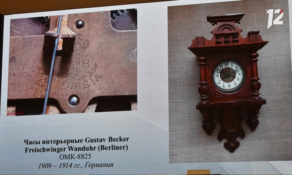 «Первая группа, о которой я расскажу, интерьерные часы Le Roi a Paris. В книге поступления они были названы французскими часами рубежа XIX—XX вв.еков. Но при их изучении стало понятно, что это не французские часы, а часы немецких мануфактур, которые изготавливались сразу группой компаний. У нас шесть экземпляров таких часов. На глаз не отличить, кто их производил. Только обратившись к клеймам, к задней плате, можно установить производителя. Выяснилось, что у нас часы принадлежат таким компаниям, как Friedrich Mauthe, Yunghans и другим. Датируются они периодом 1890-1914 годов», — рассказал Алексей Адамсон.