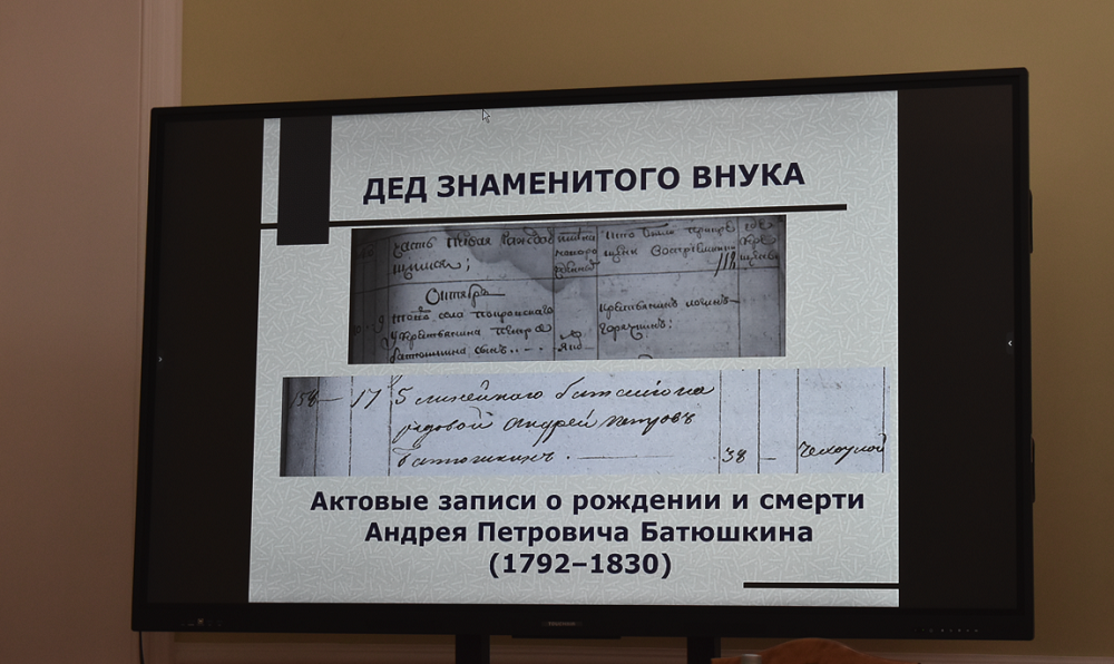 — Здесь опубликованы и прокомментированы ранее неизвестные исторические фотографии, появились новые факты, новые связи — профессиональные, служебные, общественные и семейные, то есть люди, которые связаны с омским родом Батюшкиных. Например, удалось найти очень старое свидетельство — документ 1792 года — о пребывании Батюшкиных на омской земле. Не в Омске, а на территории современного Омского района. Там находится деревня Покрово-Иртышское, тогда — посёлок Покрово-Иртышский, где родился дед Капитона Алексеевича Батюшкина — Андрей Петрович. Он впоследствии стал солдатом, служил в Омском гарнизоне, пустил здесь корни. Омские Батюшкины — это его потомки.