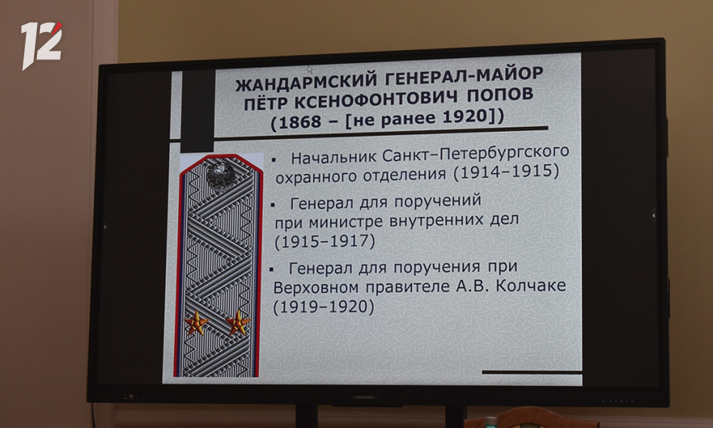 Ещё удалось найти имена некоторых людей, связанных со службой в этом доме. Например, достаточно загадочная фигура Петра Ксенофонтовича Попова. Это очень высокопоставленный сотрудник российских спецслужб, генерал-майор. Это был, грубо говоря, третий человек в министерстве внутренних дел — курировал жандармерию. А в доме Верховного правителя он в 1919 году занимался отбором служащих, которые составляли прислугу в здании, и занимался организацией секретной охраны на подъездах к зданию. В 1920 году он был арестован в Иркутске, дал достаточно скупые показания, после чего иркутские чекисты вернули его в распоряжение омских, дальнейшая его судьба неизвестна.