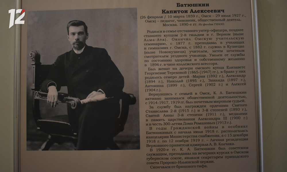 Батюшкины — значимая для нашего города семья. Капитон Батюшкин и его жена построили особняк на набережной Иртыша, в котором в 1918–1919 годах размещалась резиденция Александра Колчака, а сейчас находится Центр изучения истории Гражданской войны.