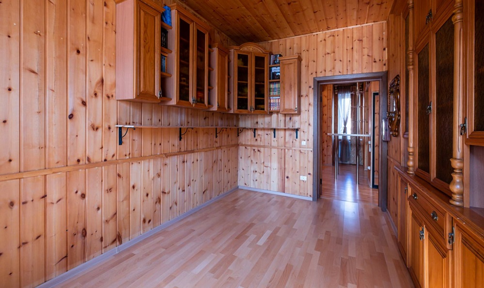 Как сообщает продавец, в квартире выполнен авторский ремонт. Особенно интересно, что практически все стены отделаны натуральным кедром. В помещении есть две спальни, в одной из них можно выйти на застеклённую лоджию. Также покупателям достанется кухня со встроенной техникой и барной стойкой.