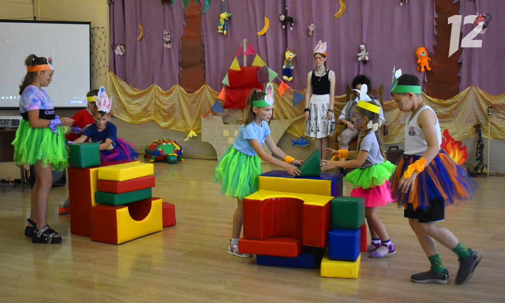 Время ребята проводят увлекательно: журналистам 12 канала удалось увидеть динамичные «Весёлые старты» и костюмированную игру «В гостях у Робинзона». Дети бегали, прыгали, танцевали, смеялись, в общем, получали классические для пришкольного лагеря эмоции. Помогали в этом девочки-вожатые — такие же школьницы, только постарше.
