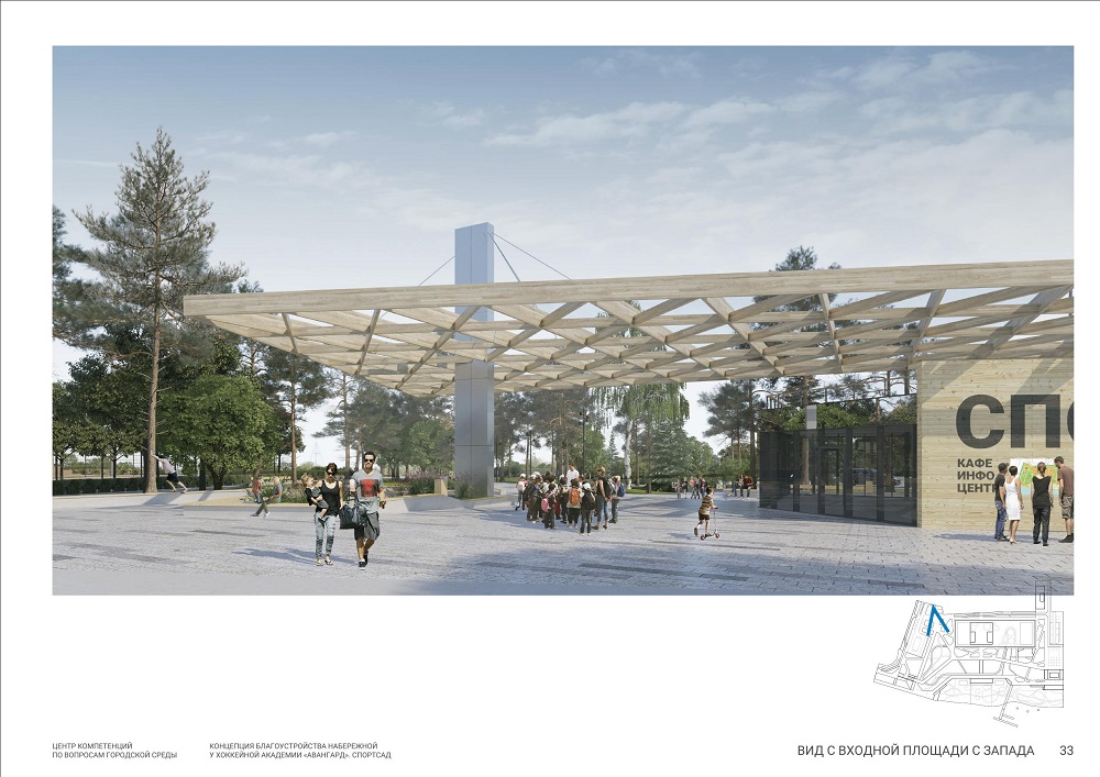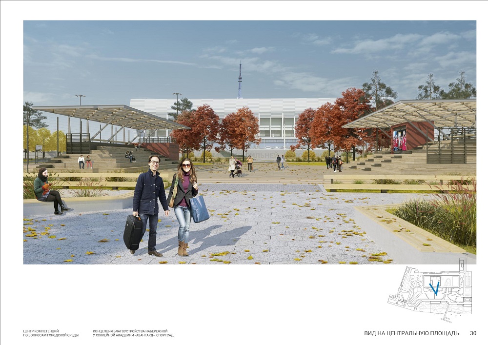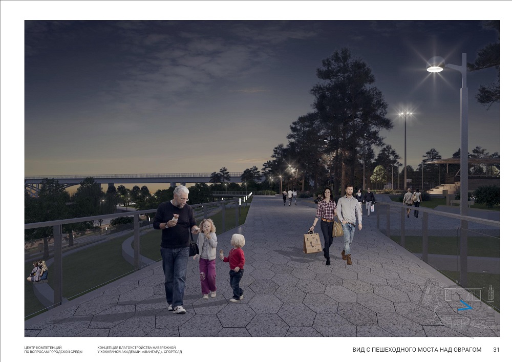 Набережная станет часть спортивно-хоккейного центра. Николай Апатин и Андрей Бережко стали архитекторами программы под названием «Спортсад». По информации омского Центра компетенций по вопросам городской среды общая площадь набережной составит 5,7 га.