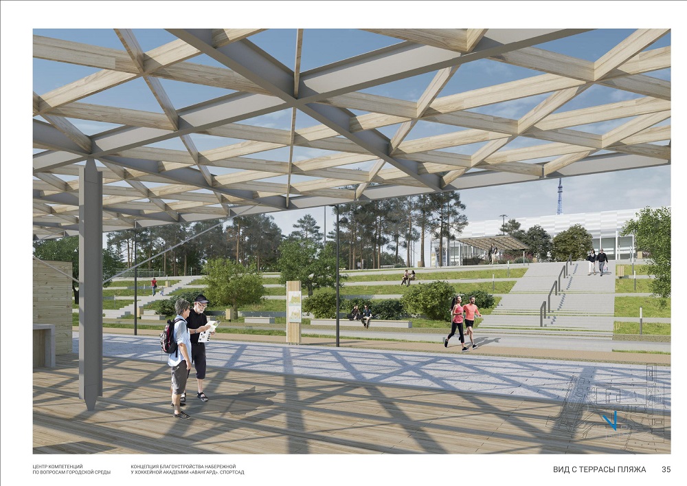 На территории обустроят комплекс открытых спортплощадок, появятся тренажёры и места отдыха у воды, обзорные площадки.