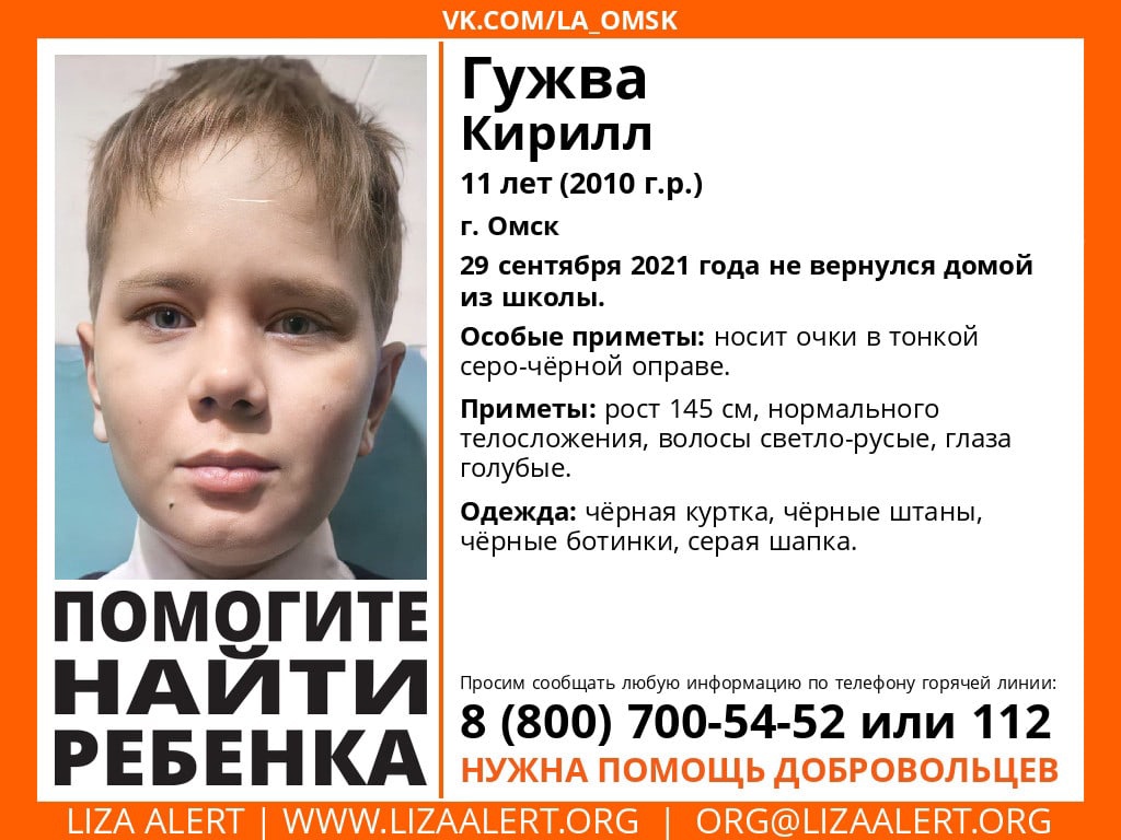 Информацию о ребёнке можно сообщить по телефону 8-800-700-54-52, 112 или присоединиться к поискам.