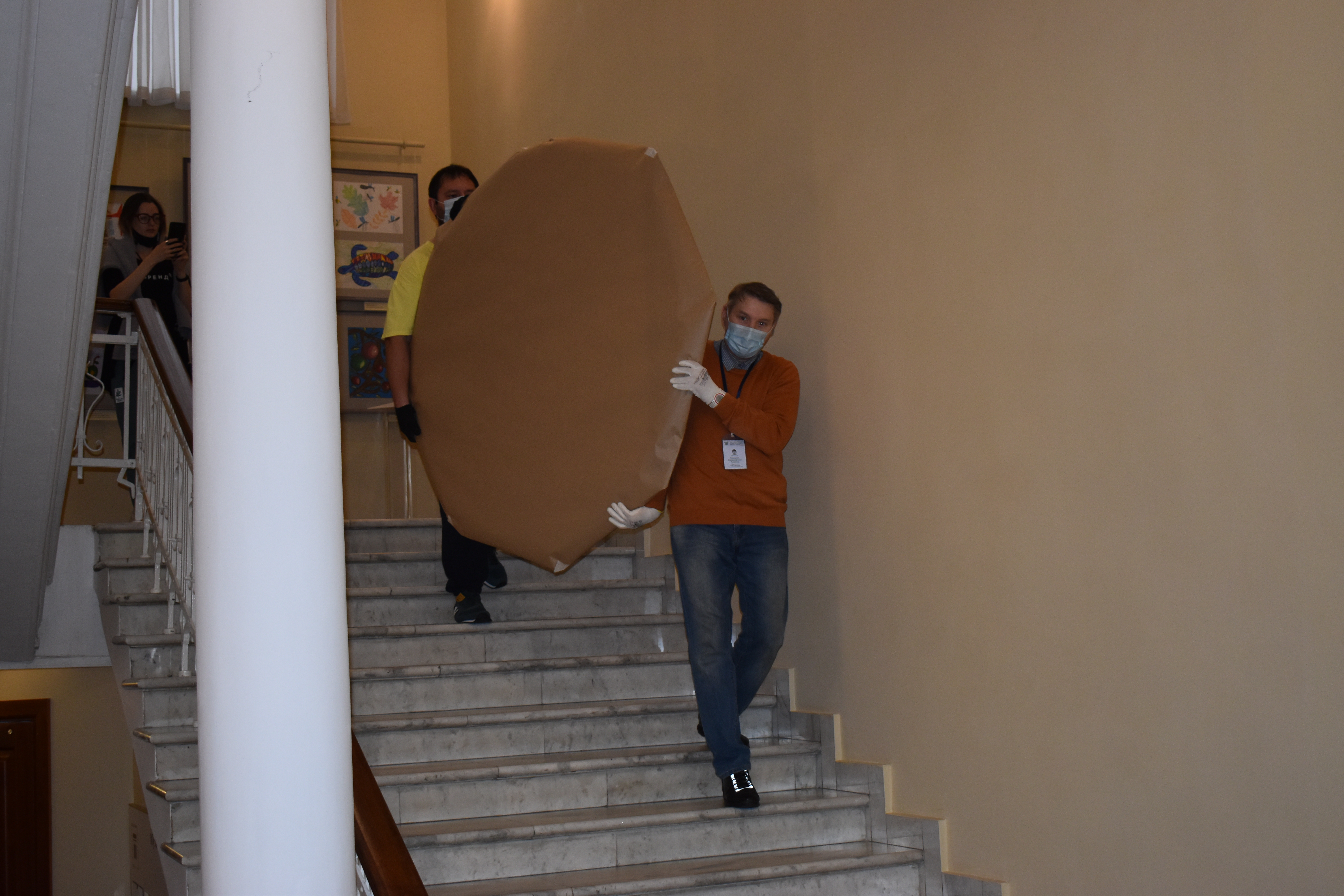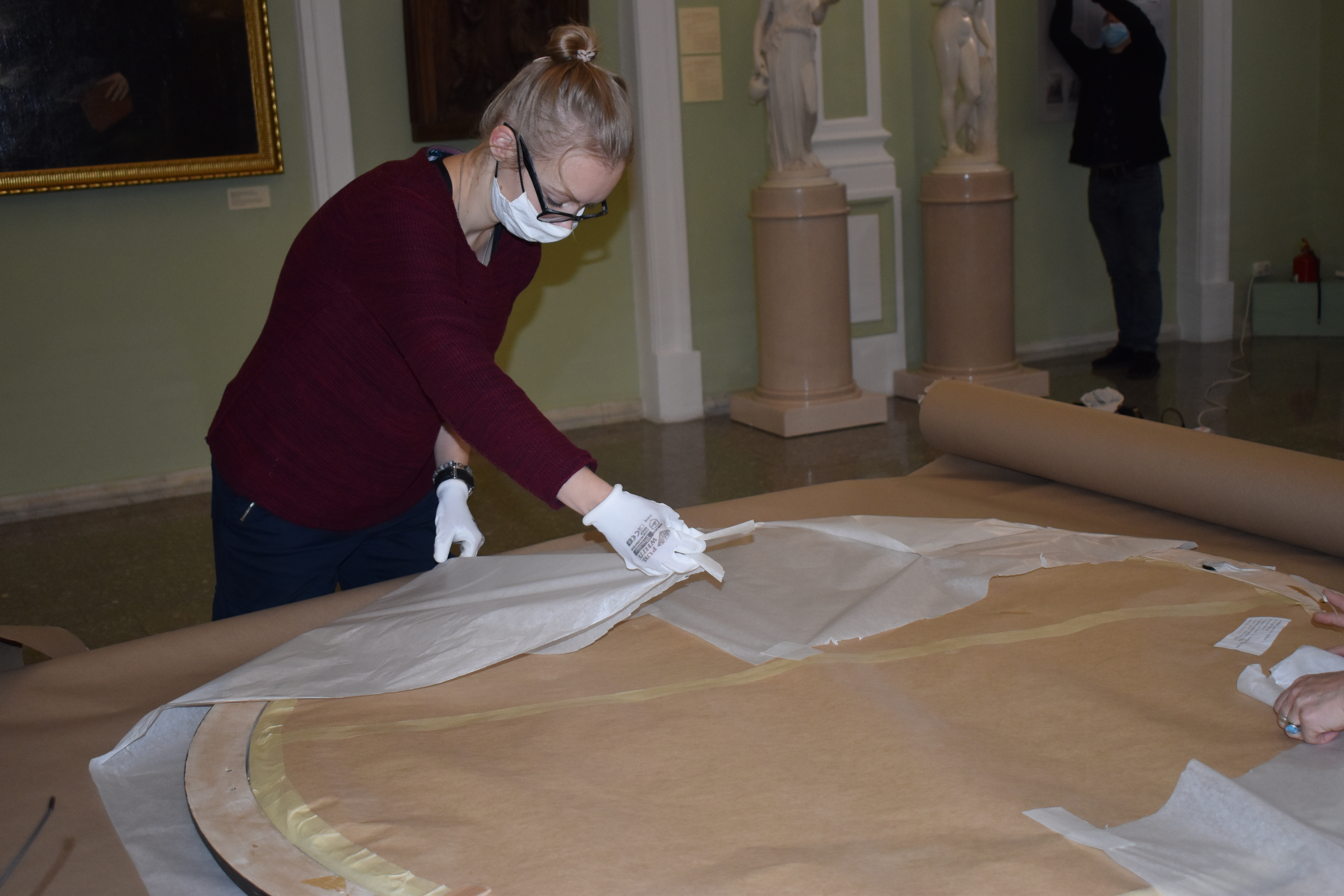 Выставка в Москве откроется уже скоро — 3 ноября. К отправке туда плафоны готовят тщательно. Сначала рабочие осторожно снимают их со стены, затем реставраторы проверяют, нет ли у шедевров противопоказаний к поездке.
