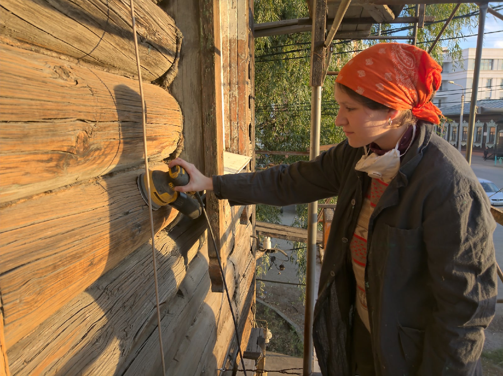 Сейчас ребята восстанавливают дом на Пушкина, 15. Чтобы вернуть ему первоначальный нарядный вид, требуется изготовить по сохранившимся образцам множество элементов деревянного декора. Пока одни волонтёры ремонтируют здание снаружи, другие ошкуривают и красят новые резные наличники. Всю работу планировали завершить до холодов, но возникла неожиданная проблема.