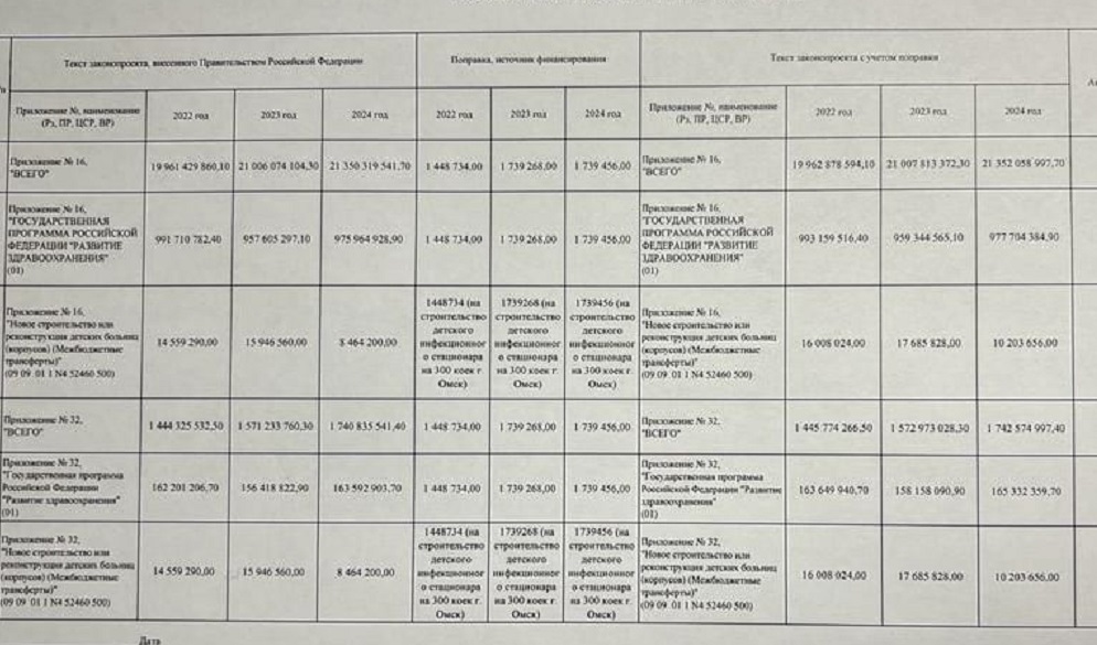 Согласно этой поправке, Омская область должна получить необходимые средства для строительства детского инфекционного стационара на 300 мест.