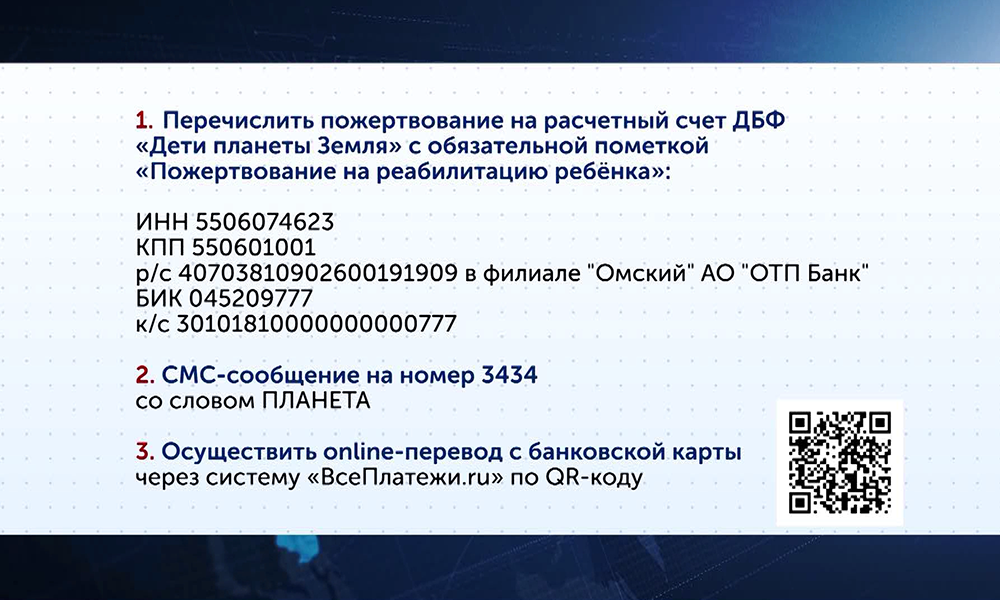 Помочь Вике можно, отправив любую сумму на расчётный счёт фонда «Дети планеты Земля» с обязательной пометкой «Пожертвование на реабилитацию ребёнка», а также написав СМС-сообщение на номер 34-34 со словом ПЛАНЕТА.