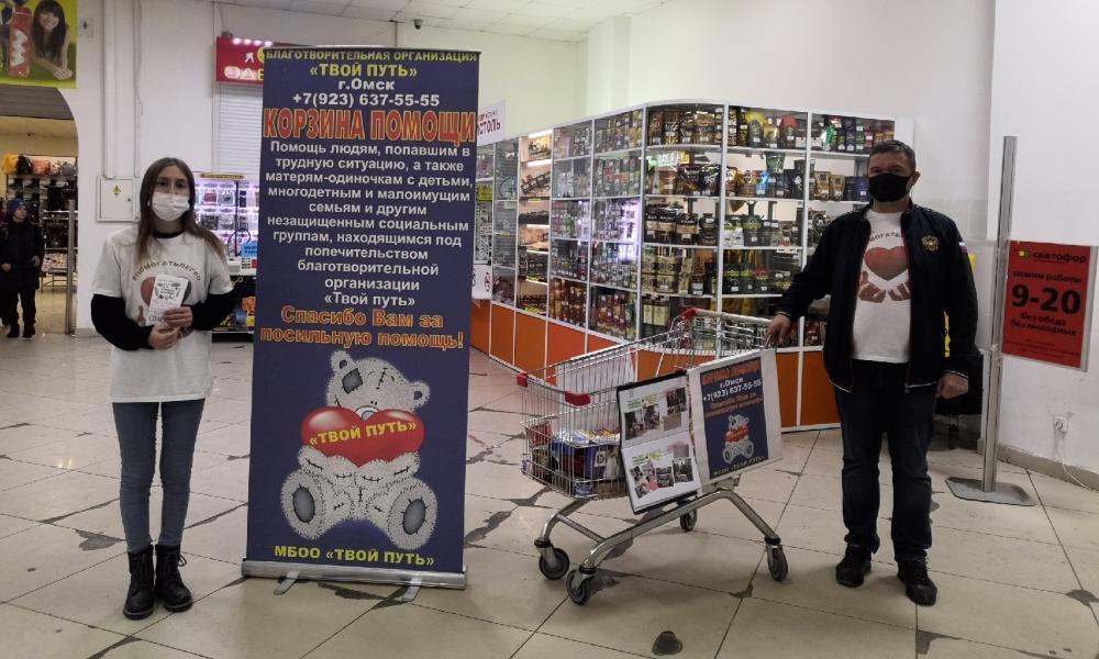 Акцию «Корзина помощи» с августа 2020 года проводит благотворительная организация «Твой путь». Суть проекта проста: любой омич при покупке продуктов для себя и своей семьи может также приобрести крупы, макароны, консервы, конфеты и другие продукты длительного хранения для малоимущих. После чего передать их волонтёрам, находящимся неподалёку от магазина. Они и доставят «корзину» нуждающимся.