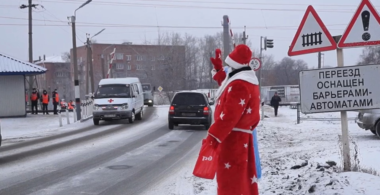 Не только приносит подарки, но и спасает жизни: на омские ж/д переезды вышел Дед Мороз