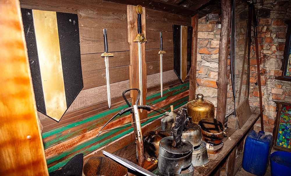 А в нескольких комнатах замка Александр обустроил музей оружия. Здесь есть мечи, сабли, шпаги, щиты, доспехи и исторические костюмы. К слову, оружие и одежду омич делает сам.