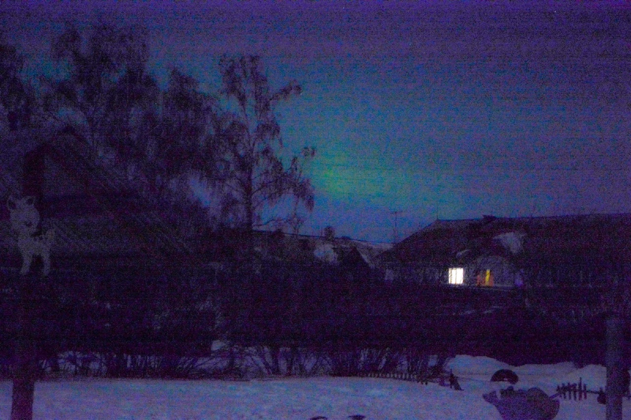 К сожалению в черте города из-за большой засветки (фонари, фары машин, окна) увидеть полярные сияния даже при благоприятных условиях почти нереально, поэтому, если вам интересно поохотиться на сияния, нужно, услышав в следующий раз предупреждение о геомагнитной буре, отправиться за город. И может быть, вам повезёт так же, как Милене Пономарёвой.