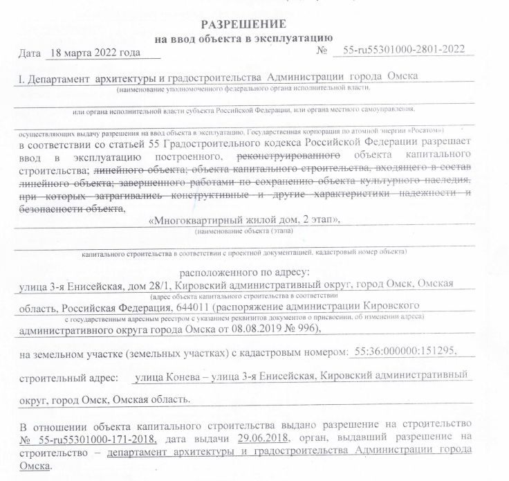 Жилой комплекс «Енисейский» от застройщика «Сибирский строитель» получил разрешение 18 марта 2022 года.
