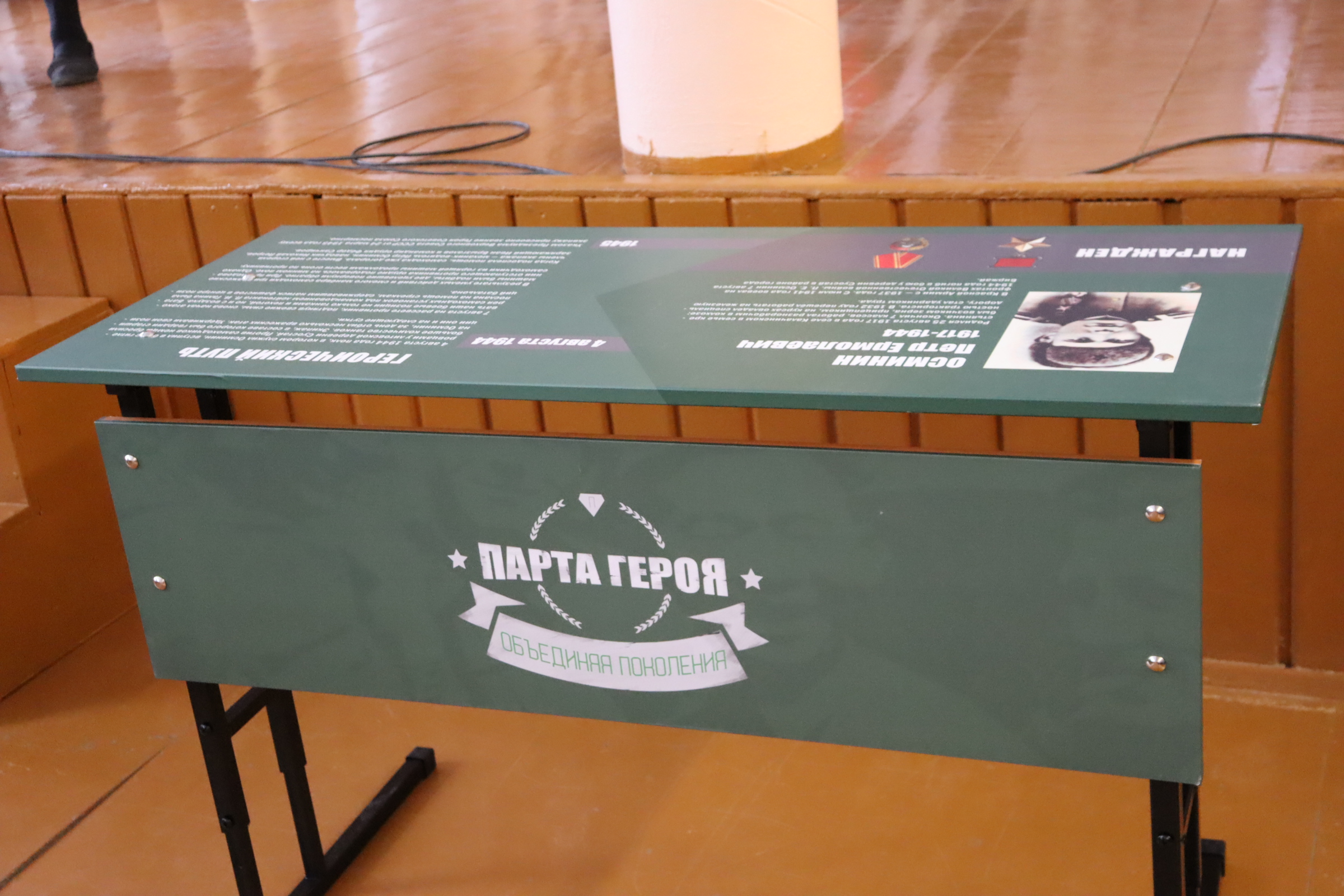 На «Парте Героя» размещают данные о заслуженном человеке, его фотографию, биографическую информацию и героический путь. Также на парту наносят QR-код со ссылкой на официальный портал с информацией о героях.