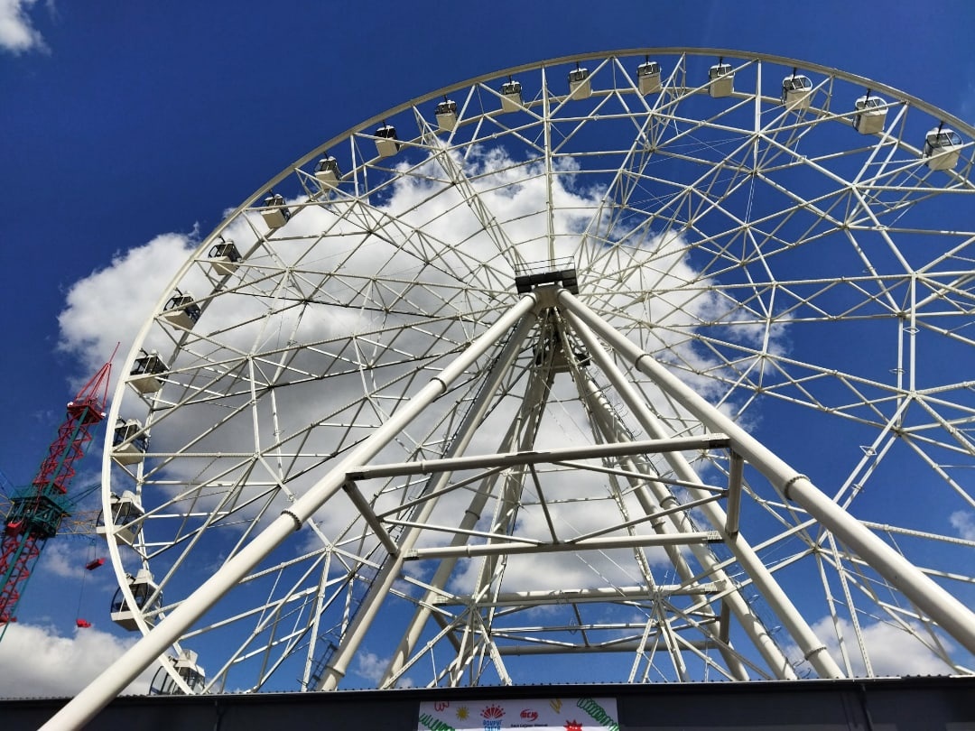 Аттракционы здесь начали работать несколько дней назад в тестовом режиме, многие уже успели прокатиться и самом знаменитом из них — колесе обозрения, которое по высоте занимает третье место в России. Оно стало новой достопримечательностью Омска, так как видно его даже с Левого берега.