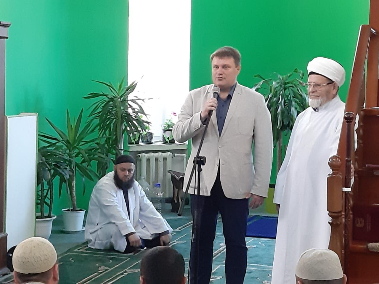 Таймас Абдуалинов посетил мечеть, которая находится на улице Мельничная в Старом Кировске, и поздравил имама Даулета.