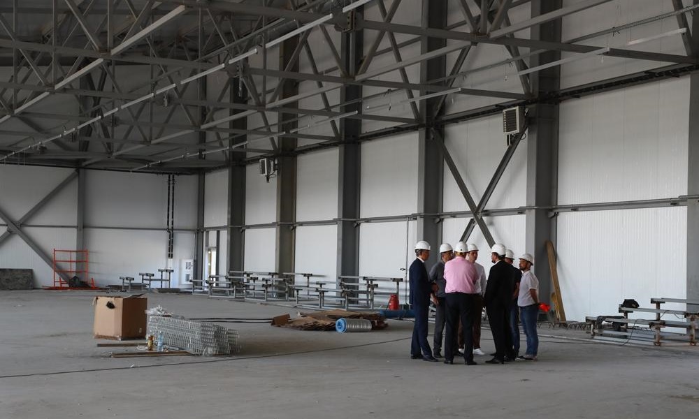 Подрядной организацией ООО «АРТ РемСтрой» уже установлены стеновые и кровельные сэндвич-панели, завершены работы по бетонированию полов, а также монтаж основных металлоконструкций. Завершаются отделочные работы и продолжается монтаж систем водопровода, вентиляции и электрощитовой. Также уже ведутся работы по благоустройству прилегающей территории.