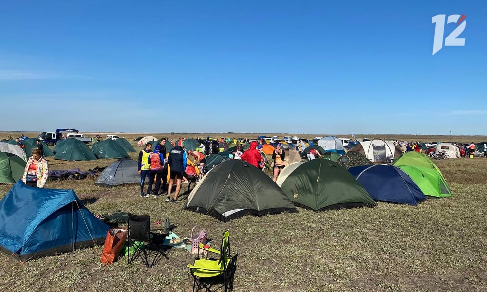 Участники и болельщики образовали целый палаточный городок — многие приехали на Эбейты ещё вчера вечером. Но ночью на лагерь обрушился шквальный ветер, некоторые палатки сорвало с места, улетели вещи. Но это не сказалось на спортивном духе участников.