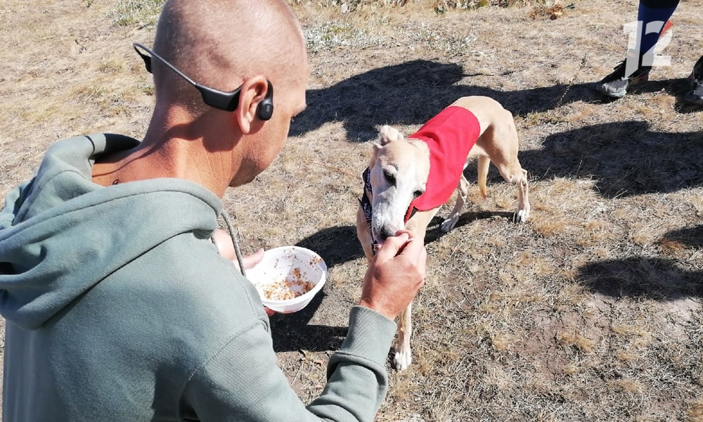 Выйти на дистанцию смогли не только люди. Пес по кличке Сеня и его хозяин Геннадий Запорожец приехали с командой тюменского бегового клуба. Питомец героически пробежал 25 км. Хозяин рассказал, что это уже не первый забег, поэтому хоть пёс уже и не молод, переживать за него не стоит — они даже бегали горный трейл на Урале. А вот в Омскую область приехали впервые, идея и организация нашего забега понравились.