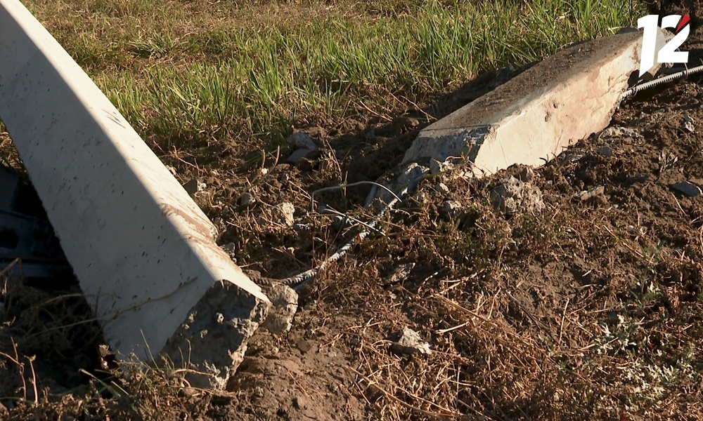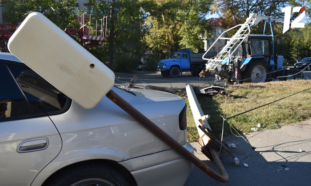 Как очевидец рассказал 12 каналу, сегодня, 16 сентября, около 4 утра, он шёл по улице 22 Апреля, направляясь в магазин, и внезапно увидел, как в районе дома № 4 машина врезалась в столб, который после этого упал. Оборвались находящиеся под напряжением провода.