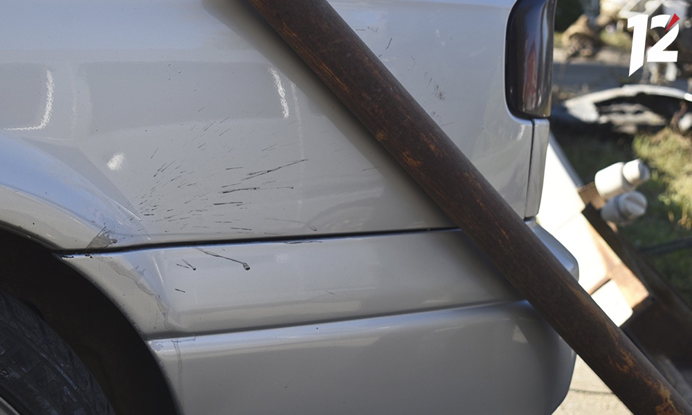 Фонарный столб упал, к счастью, не прямо на ударившую его машину, а рядом. Но при этом он поцарапал автомобиль, который был припаркован по соседству. Сам столб разломился на две части.