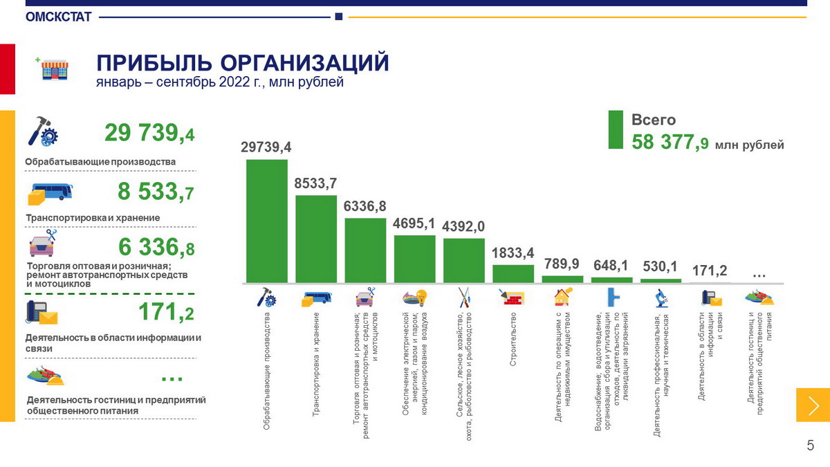 За 9 месяцев 2022 года омские предприятия заработали 58 млрд рублей