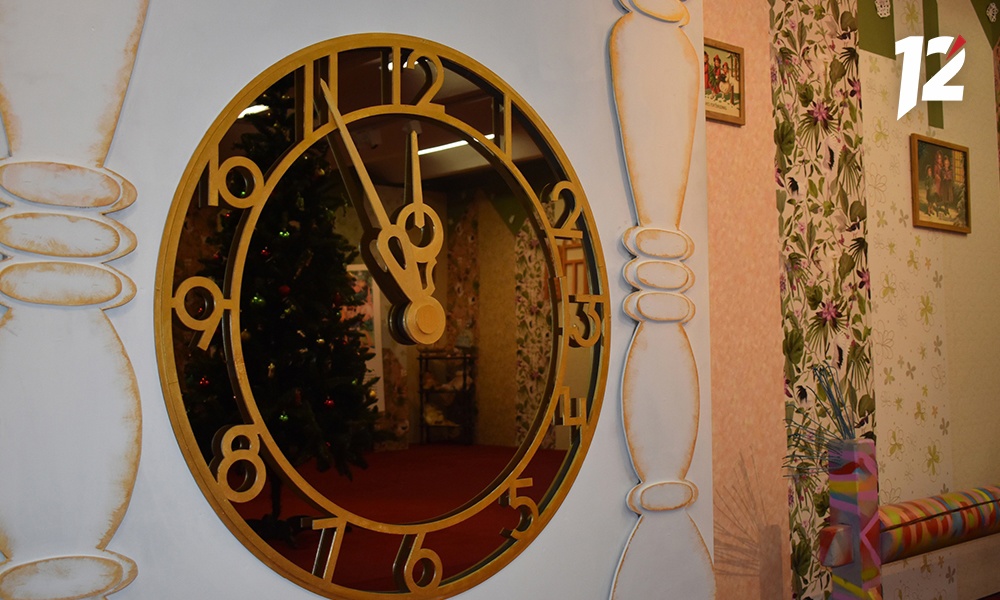 Маршрут для юных путешественников и их родителей начинается в уютной новогодней гостиной. Здесь наряжена ёлка, часы скоро пробьют новогоднюю полночь, вместо картин на стенах репродукции старинных рождественских открыток.