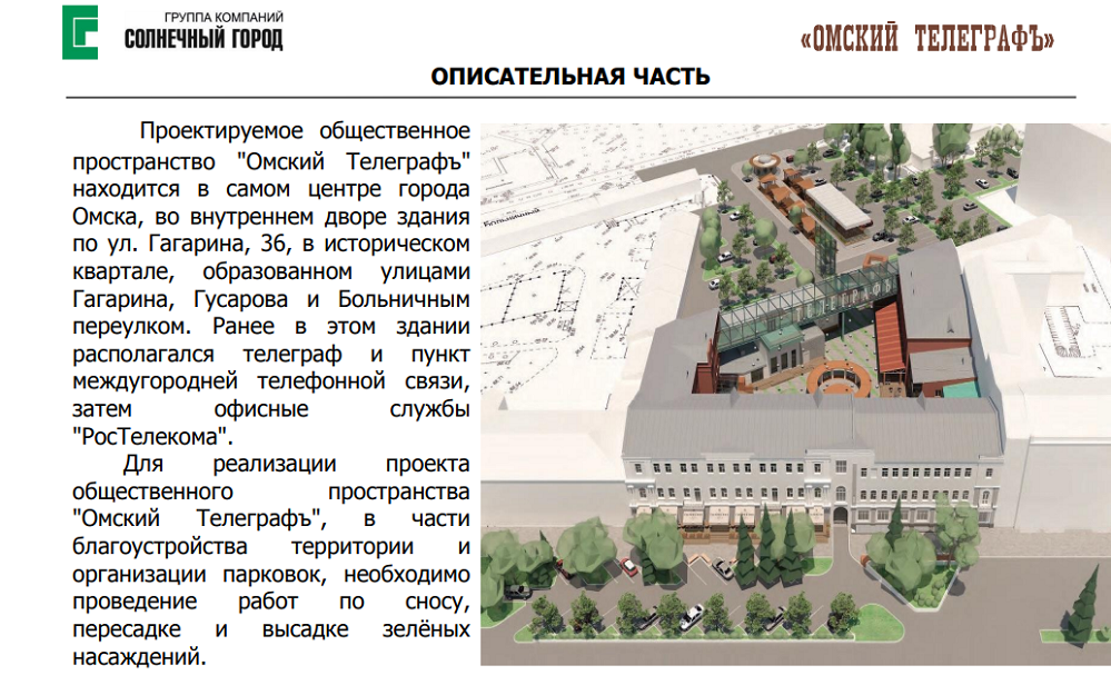 Добавим, что после того как предприниматель получит все документы, ей выдадут разрешение на снос деревьев. Что касается «Омского телеграфа», то это будет общественное пространство с барами, кафе и небольшими магазинами.