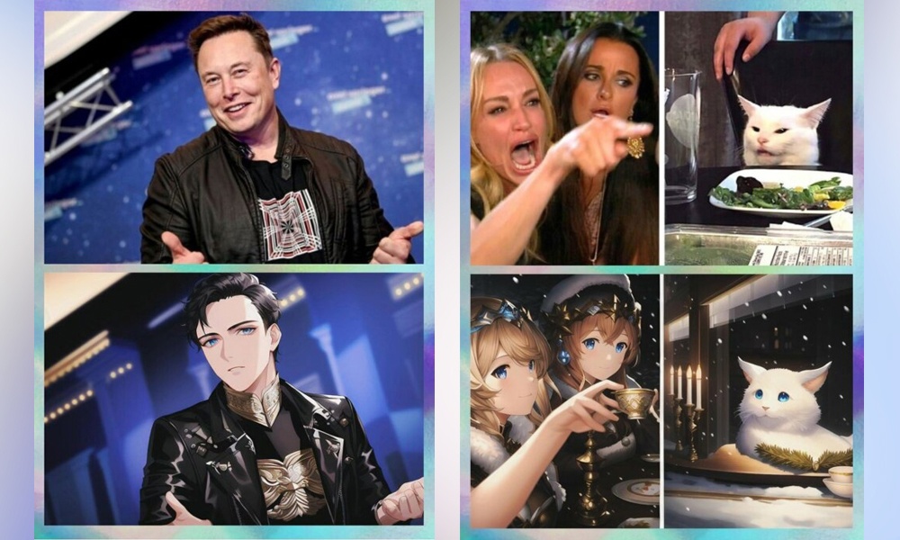 Настоящим открытием года для мемоделов стали нейросети. Теперь можно просто загрузить любое фото человека на сайт Different Dimension Me и он сделает из него аниме-персонаж. И если сначала стиль японской рисовки просто придавали знаменитым людям, то потом стали добавлять туда популярные мемы. Мем в квадрате, получается!